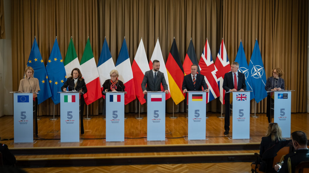 20-go lutego br., Wicepremier, minister obrony narodowej Władysław KOSINIAK-KAMYSZ gościł ministrów obrony Francji, Niemiec, Włoch oraz Wielkiej Brytanii. W obradach, będących siódmym spotkaniem w tym formacie od 2024 roku, uczestniczyli również: Wysoka Przedstawiciel Unii Europejskiej do Spraw Zagranicznych i Polityki Bezpieczeństwa Kaja KALLAS oraz zastępca Sekretarza Generalnego NATO Radmila SHEKERINSKA. W obradach, w formule wideokonferencji, uczestniczył również minister obrony Ukrainy Mychajło FEDOROW.